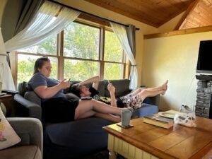 For the past three days and the next six weeks, both adult kids are back home in their childhood bedrooms. Our daughter’s bedroom had become my cozy office, and my son’s room had become my husband’s dedicated music cave. My office is now in the corner of the family room, and the music cave is a wall of the master bedroom.