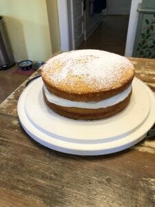 On the bright side, I am reading and doing some writing. The naps—given my health scare—are non-negotiable, and I bribed my daughter to go with me to Vogel Canyon for a long-ish walk. I baked a sponge cake for the Queen’s jubilee (see below). I read a novel, cover to cover.